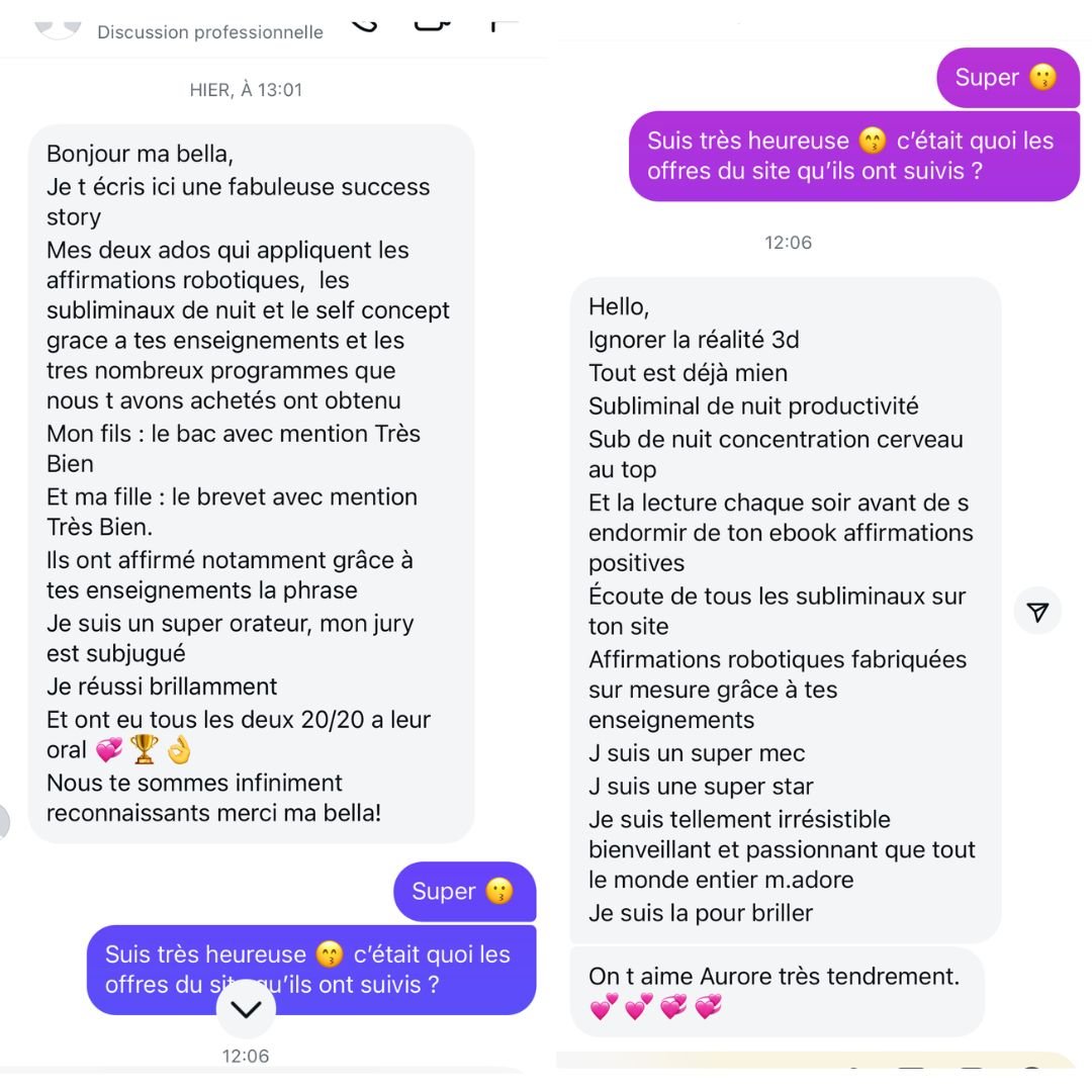 Les écouter en journée est déjà trÚs efficace, mais lorsque tu commenceras à les écouter pendant toute la durée de ton sommeil, tu constateras à quel point c'est puissant. Les résultats dans ta réalité 3D ne se feront pas attendre.